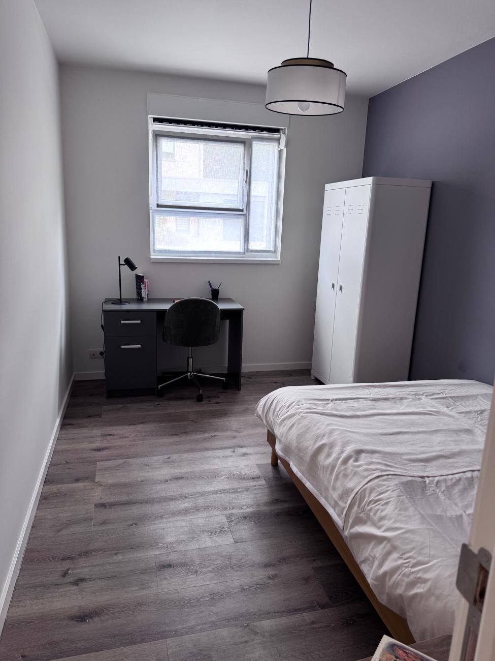• deux chambres privées contenant chacune : un lit 1 personne (1m40) (avec linge de maison), un bureau, une chaise de bureau, une garde-robe ;