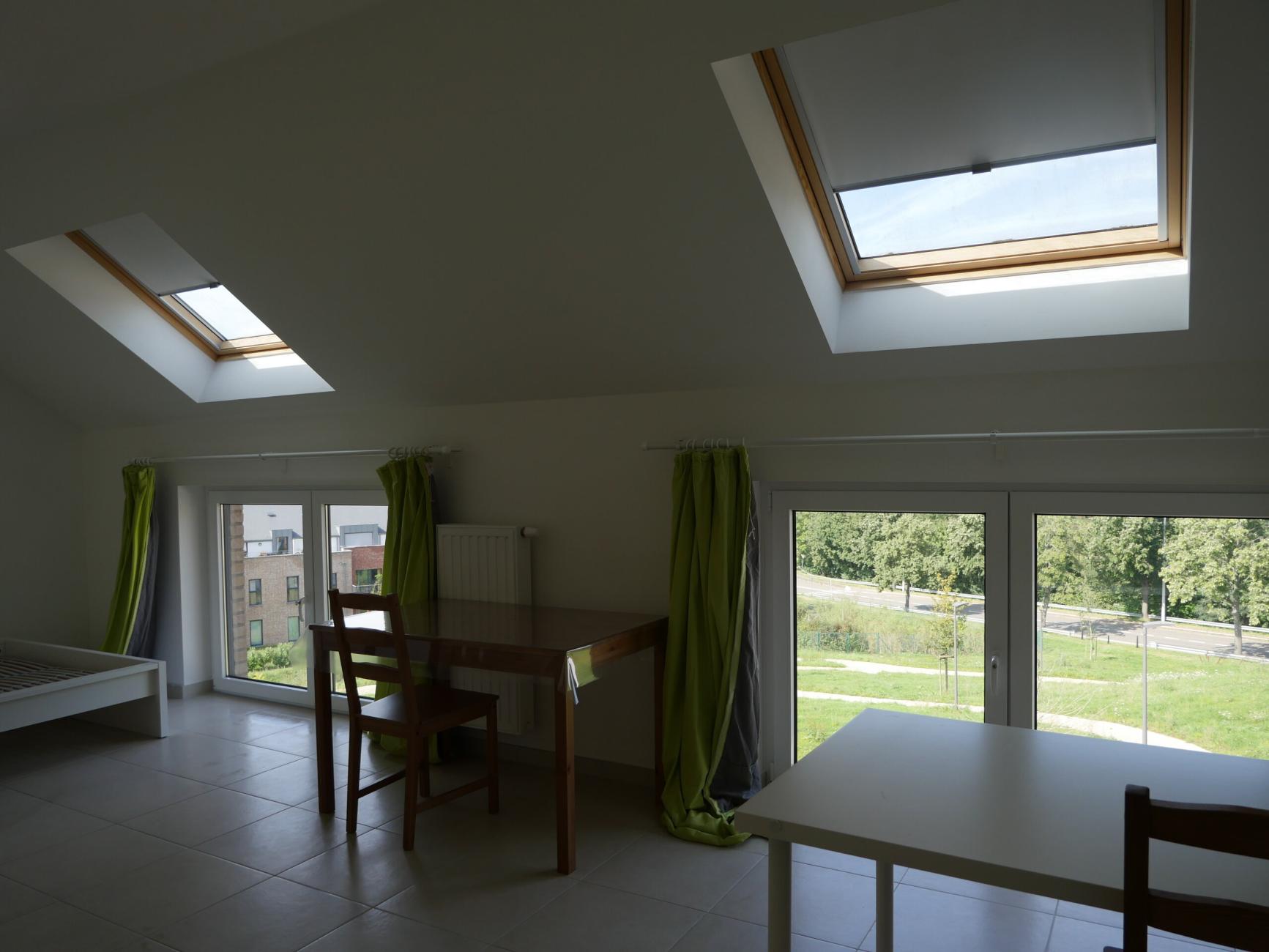 Beau studio meublé pour une personne, lumineux et confortable dans une nouvelle maison collocation avec le propriétaire (jeune diplômé) située à 20 minutes à pied du centre sportif de Blocry et de l’auditoire Coubertin de Louvain-la-Neuve, salle de douche privé, WC.