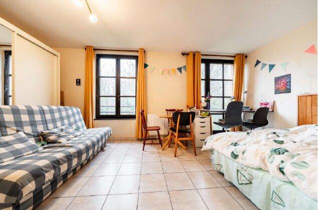 Quartier Bruyéres, dans un petit immeuble calme, studio meublé comprenant une pièce principale, un coin cuisine équipée et une salle de douche avec wc. Très lumineux, belle vue sur les bois. Proche du centre-ville. PEB C.