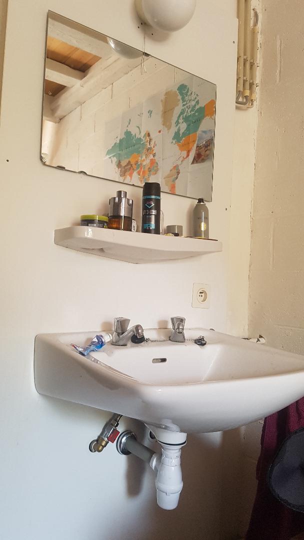 1 kot disponible à louer dans un appartement communautaire de 8, avec un grand salon, avec 2 salles de douche et 2 WC, calme et studieux