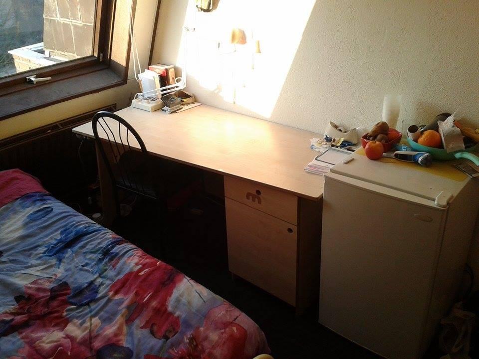 Kot d'étudiant situé au calme, chambre orientée au sud. Un frigo privatif est disponible dans la chambre. Anciennes photos mais le kot a été repeint l'an dernier + nouveaux châssis et nouvelle toiture sur l'ensemble du bâtiment. Loyer 445€ + forfait de charges 55€ . Etat des lieux gratuit fait ensemble.
