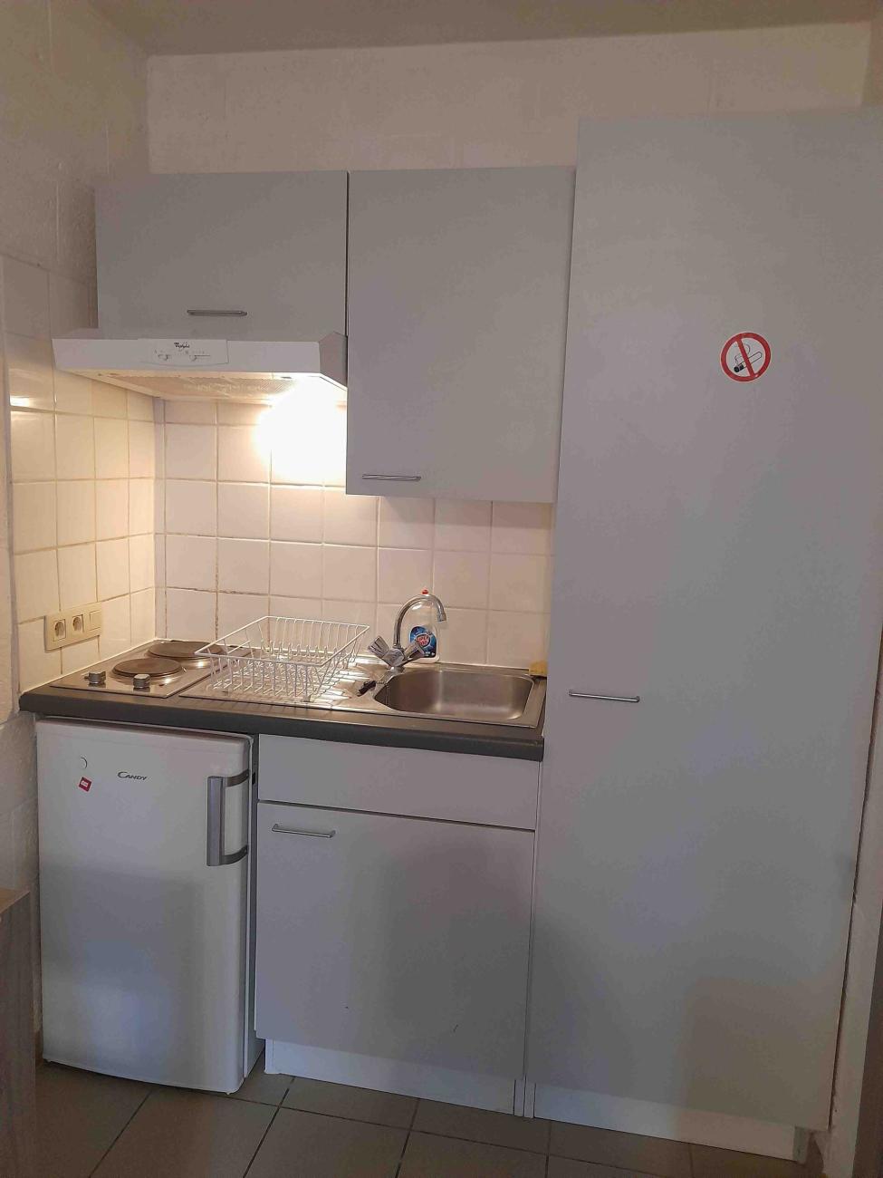 Studio de 20m² avec kitchenette, petit îlot central, et salle de douche - WC