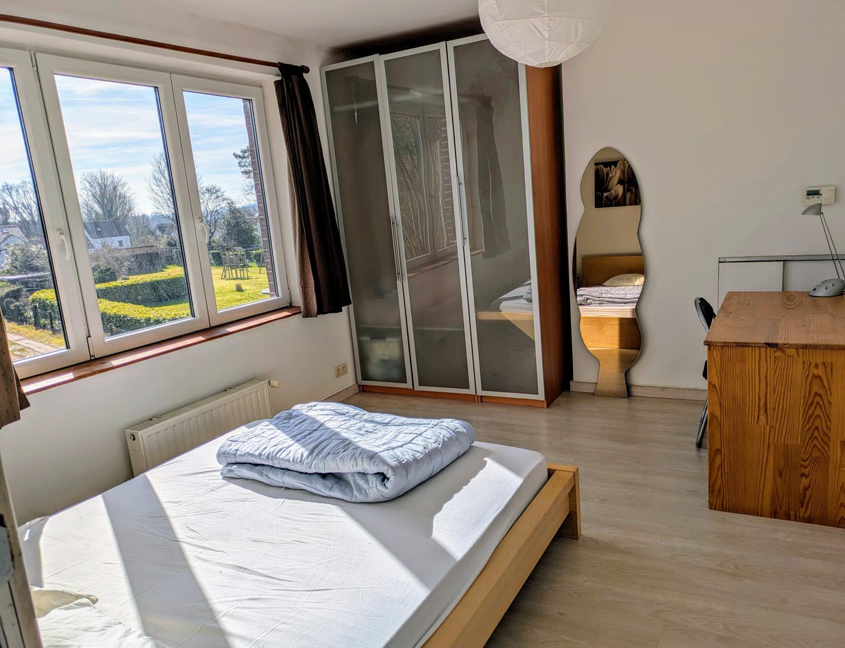 2 chambres à louer (occupation simple) avec douche privative dans une maison meublée et toute équipée avec terrasse, jardin et parking. Cadre vert et tranquille, située proche du centre ville et des grands axes routiers (N25, E411, N238).