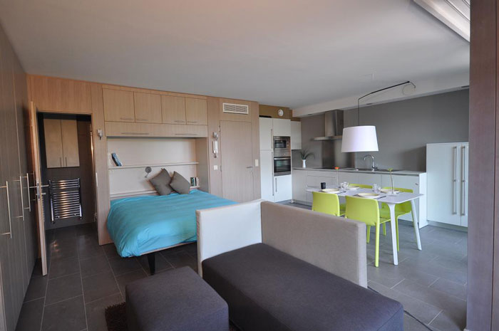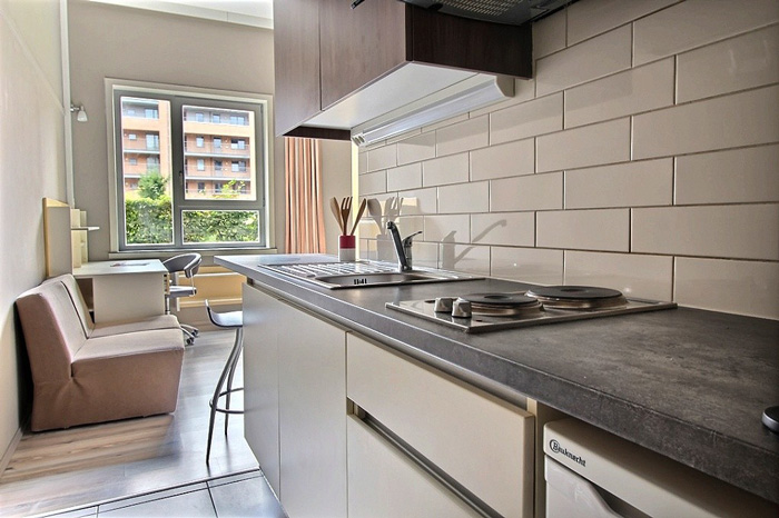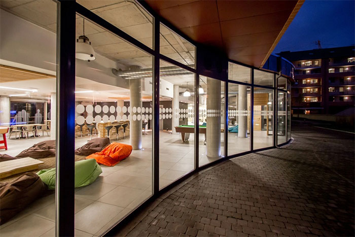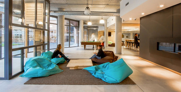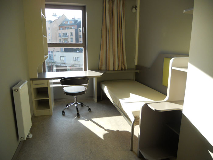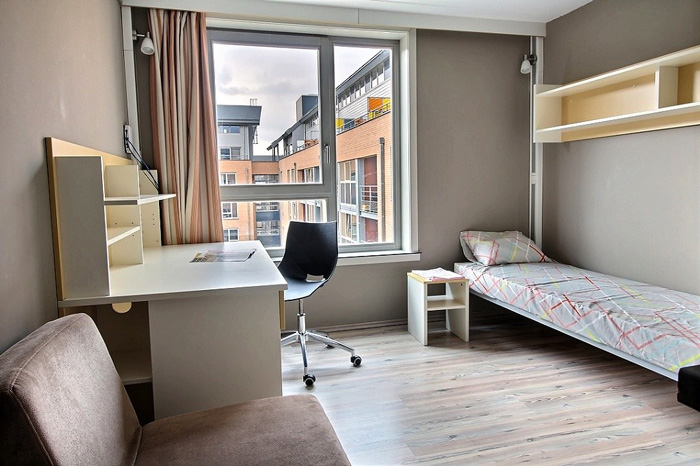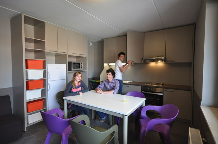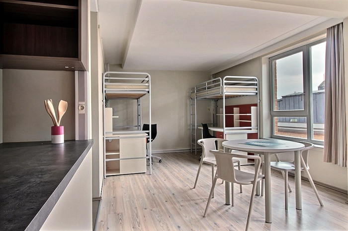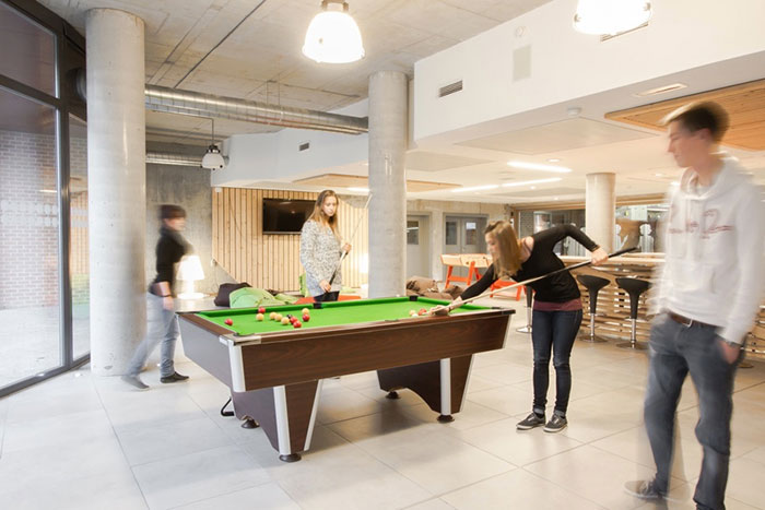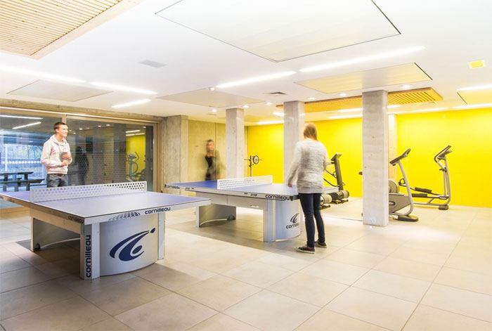 Elle met également à disposition des occupants une série d’espaces communs (salle de jeux/loisirs, coin TV, espace fitness, terrasse, salle d’étude, sauna, buanderies, parking voitures, local vélos, …).