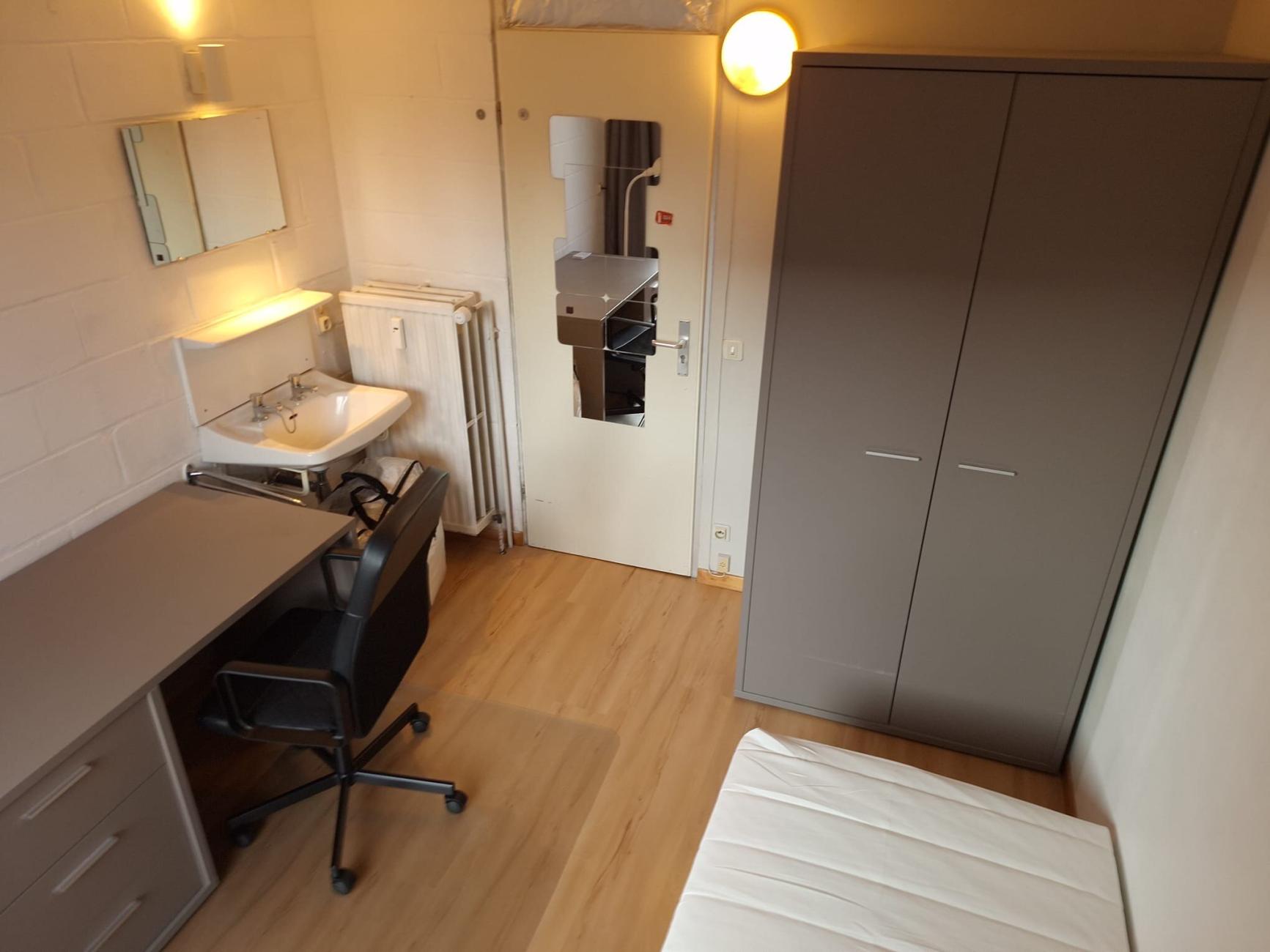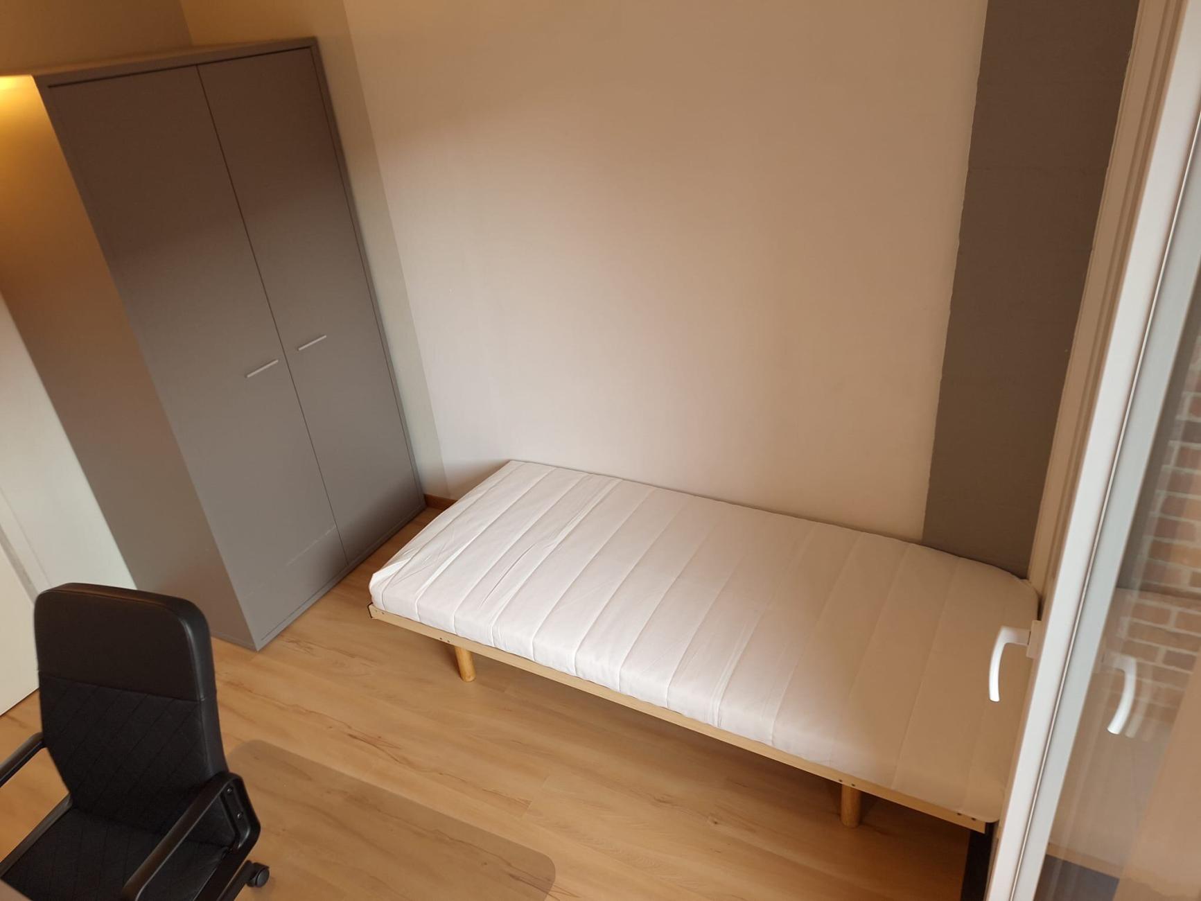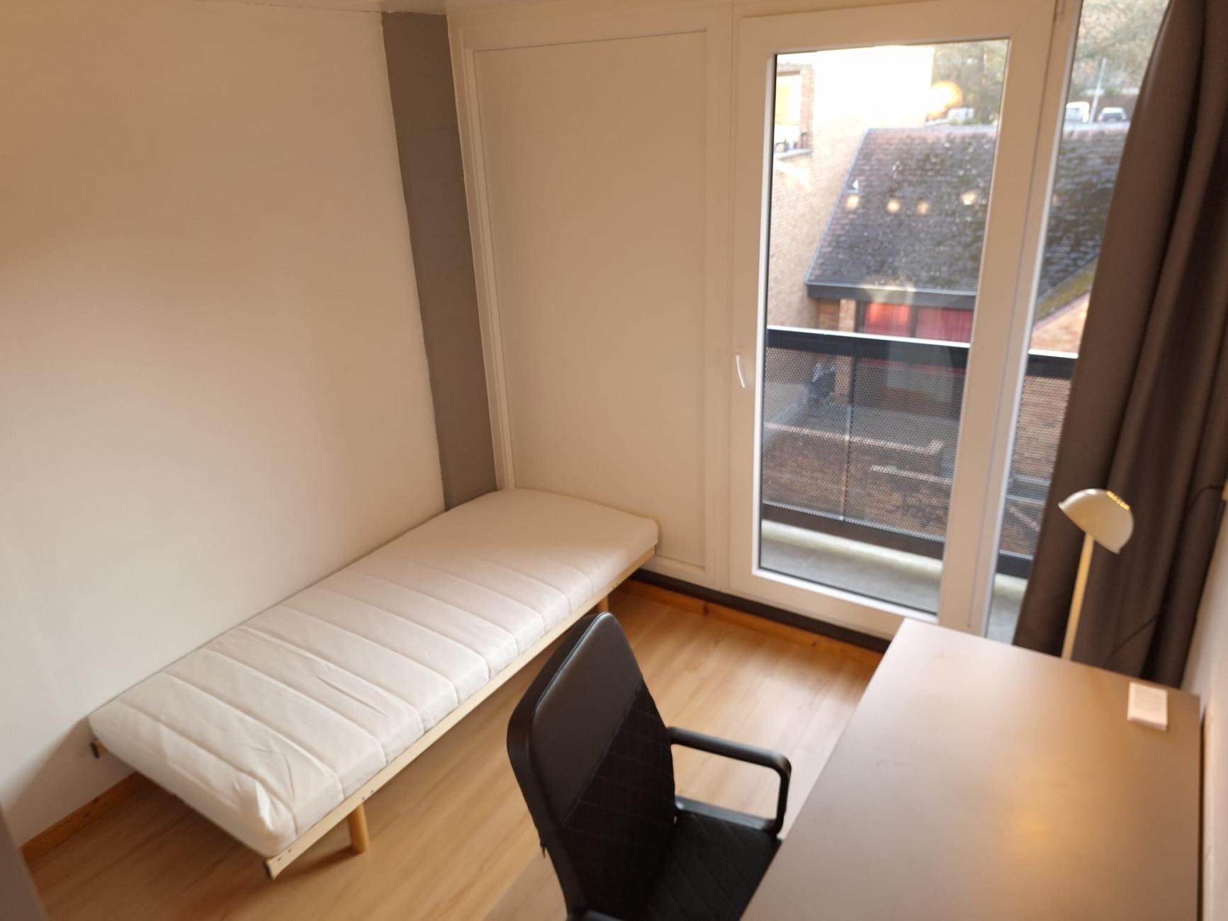 A louer chambre meublée avec lavabo et balcon dans communautaire de 12 personnes. Nouveau sommier à lattes, nouveau matelas et chaise de bureau.